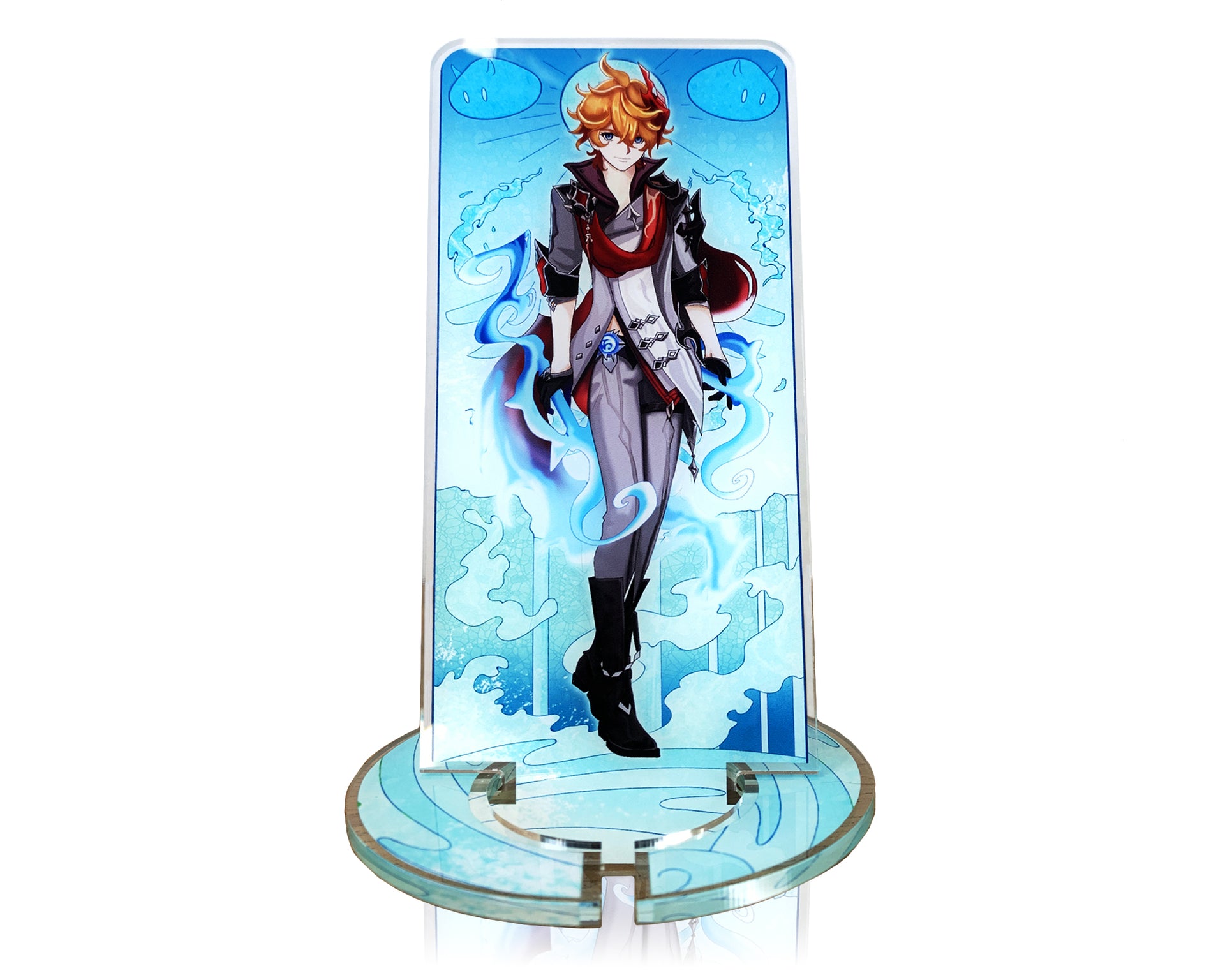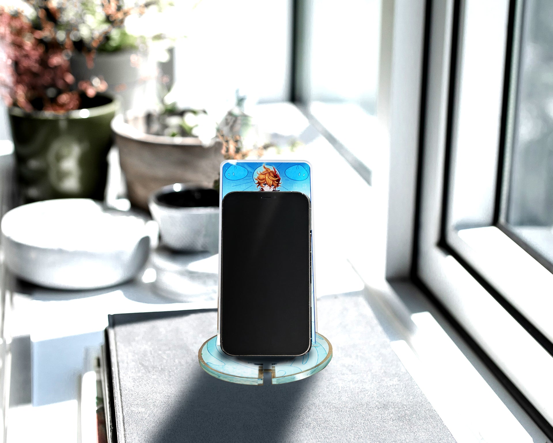 This elegant acrylic phone holder features Tartaglia from Genshin. The perfect Gift for any Genshin fan looking to spruce up their desk decor and accessories!