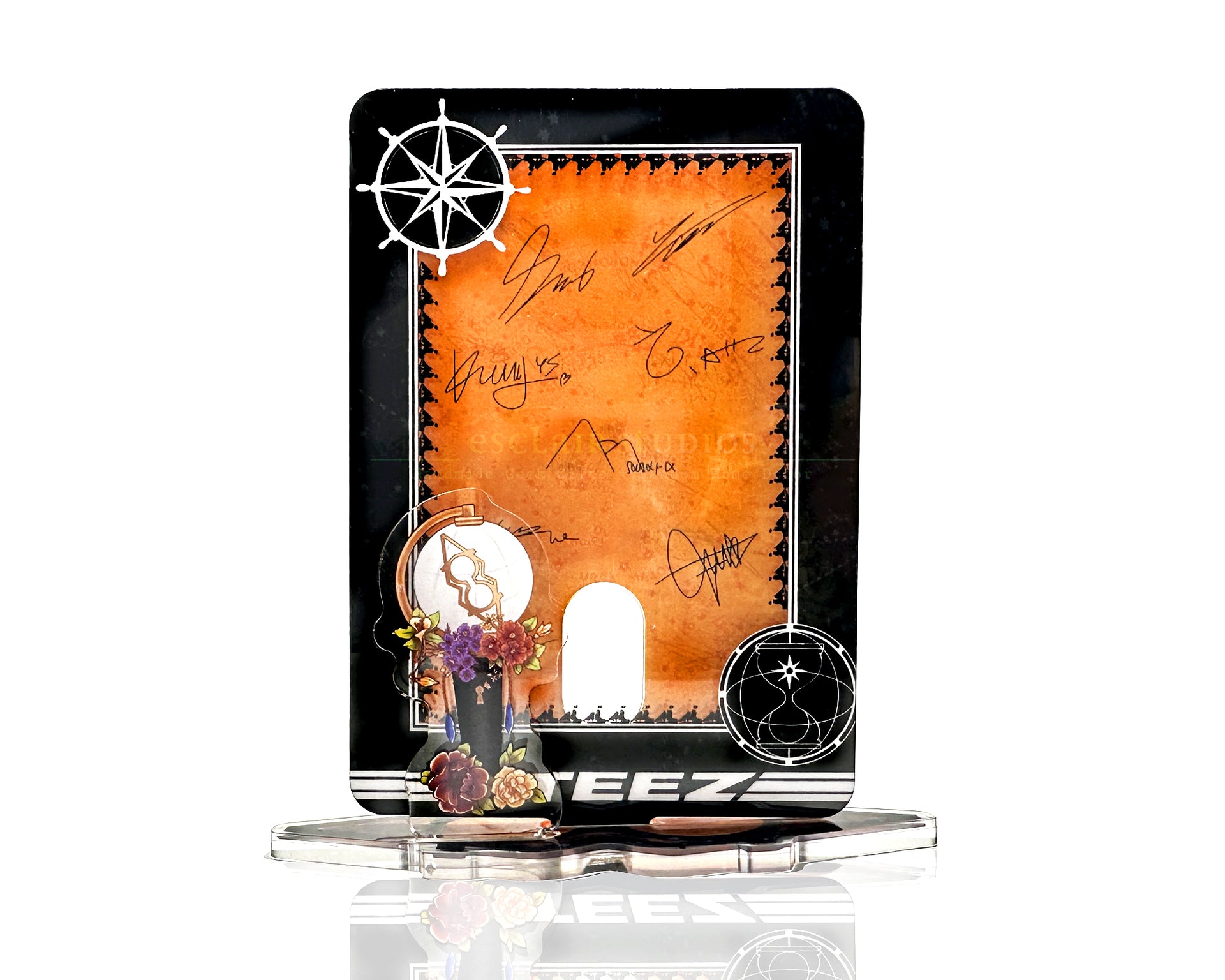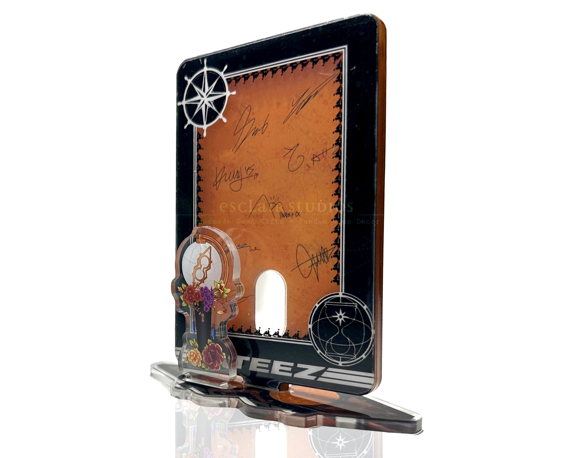 This Unique PC Holder Standee design is one of our Fan Artworks, featuring elements and symbols from the kpop group Ateez, the perfect treat for yourself, a unique birthday gift, anniversary gift, Christmas gift, or even a housewarming gift. Our Standees work well in an Office Setting, Kitchen, Classroom, Dorm Room, Living Spaces, and much more!