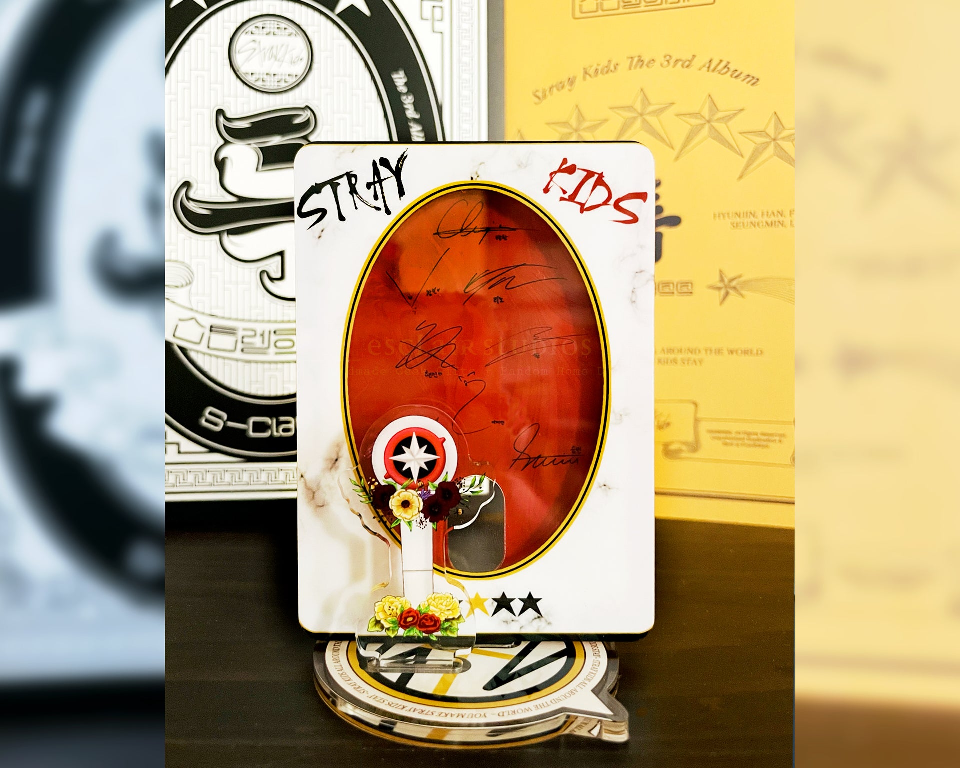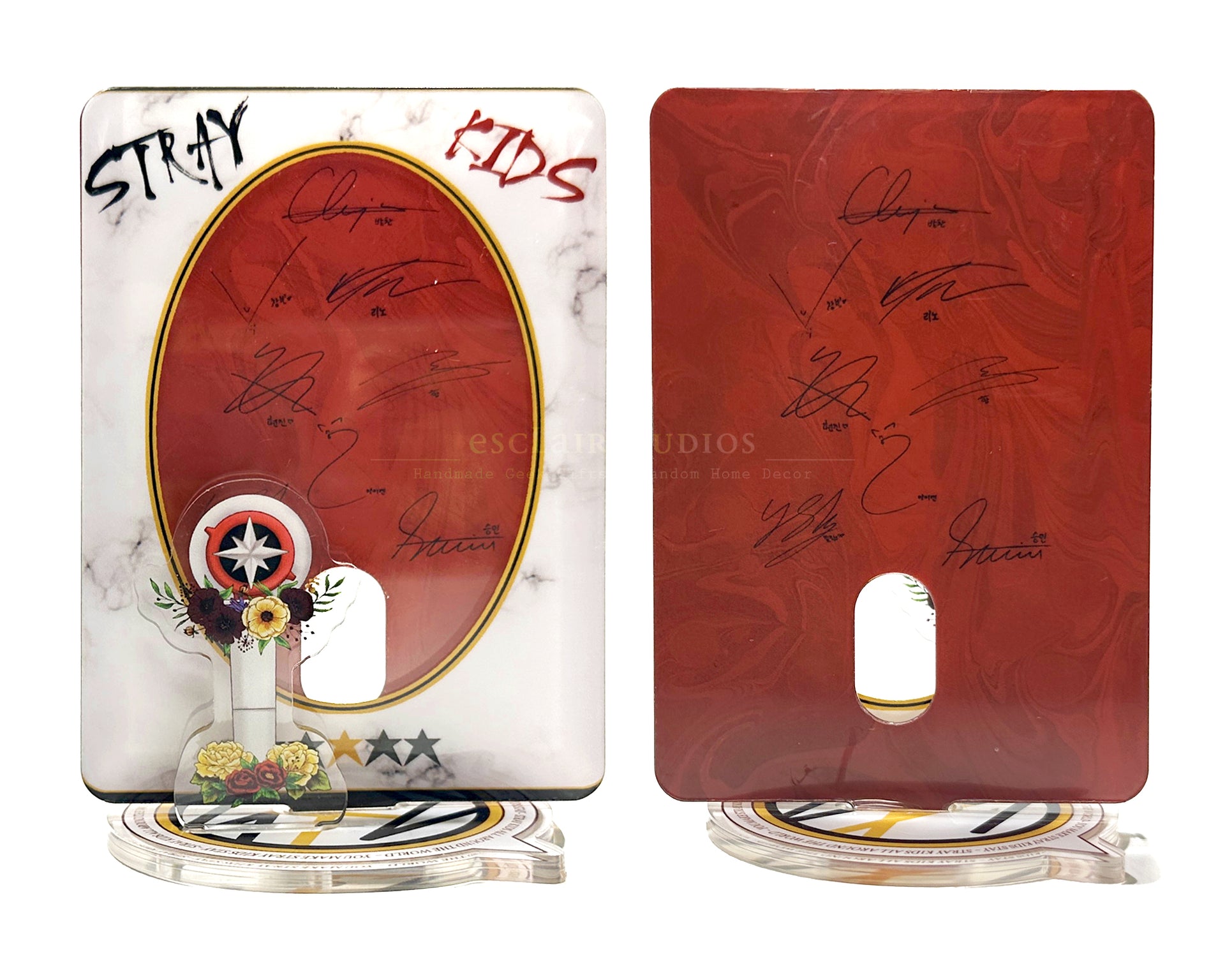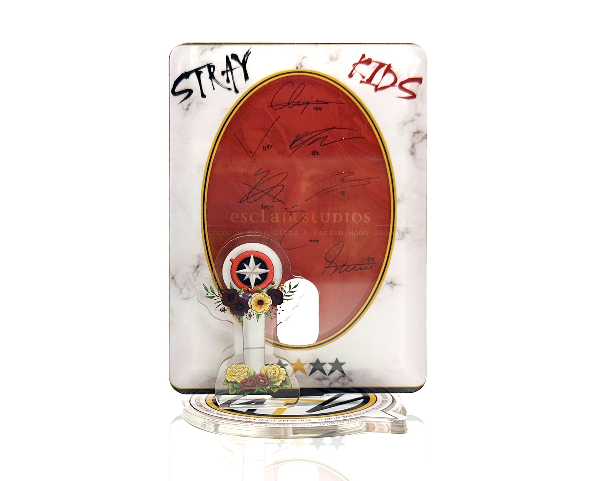 This Unique PC Holder Standee design is one of our Fan Artworks, featuring elements and symbols from the kpop group Stray Kids, the perfect treat for yourself, a unique birthday gift, anniversary gift, Christmas gift, or even a housewarming gift. Our Standees work well in an Office Setting, Kitchen, Classroom, Dorm Room, Living Spaces, and much more!