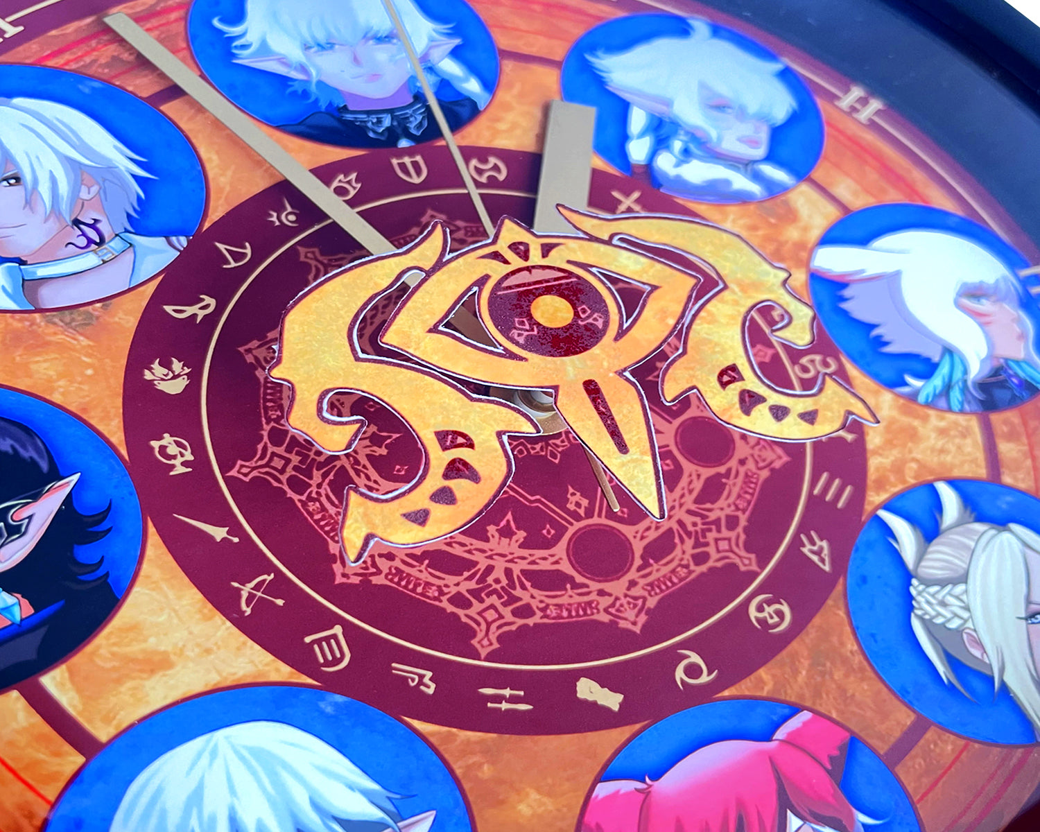 This Unique Wall Clock design is one of our Fan Artworks, featuring characters from the game Final Fantasy XIV, the perfect treat for yourself, a unique birthday gift, anniversary gift, Christmas gift, or even a housewarming gift. Our Clocks work well in an Office Setting, Kitchen, Classroom, Dorm Room, Living Spaces, and much more!