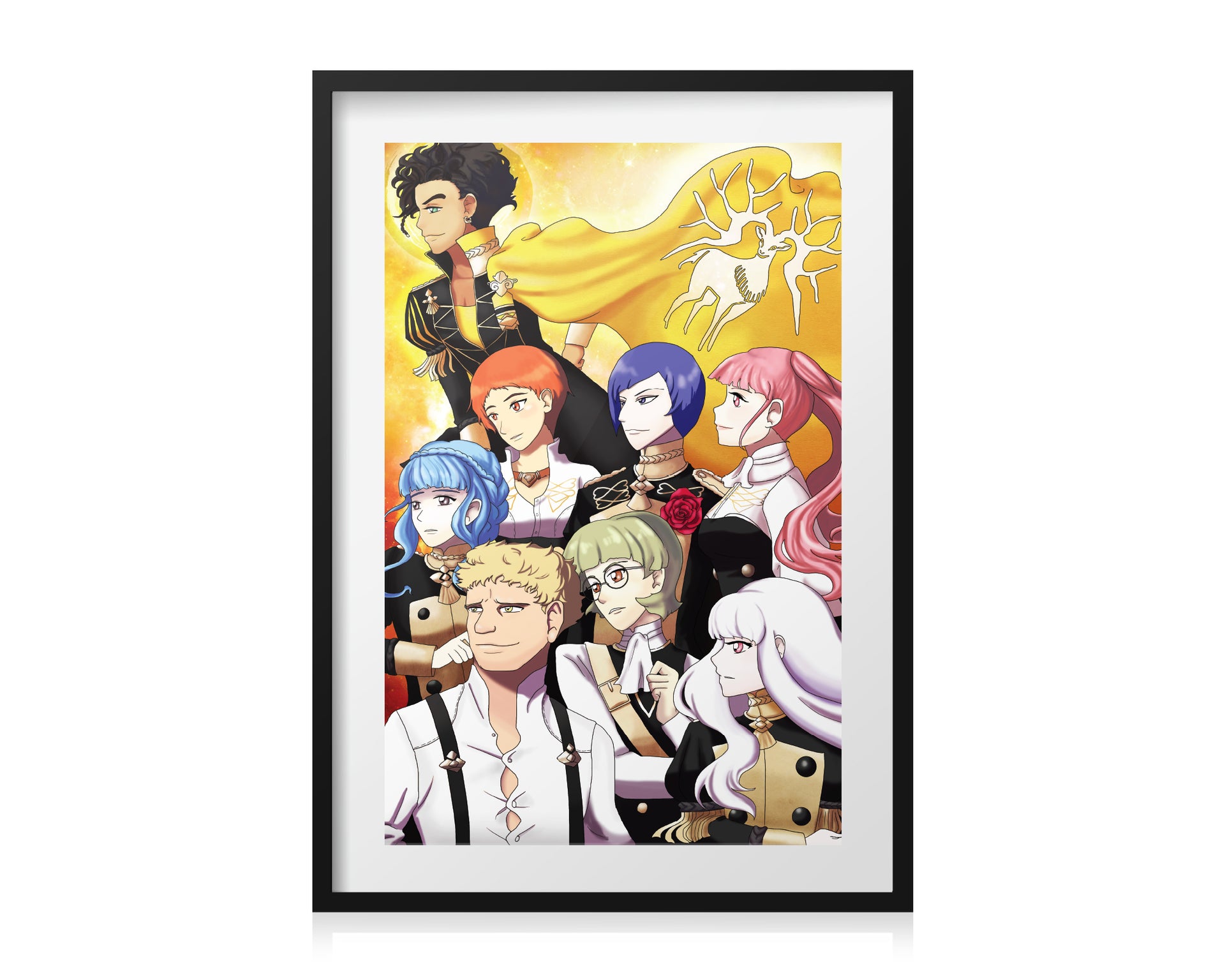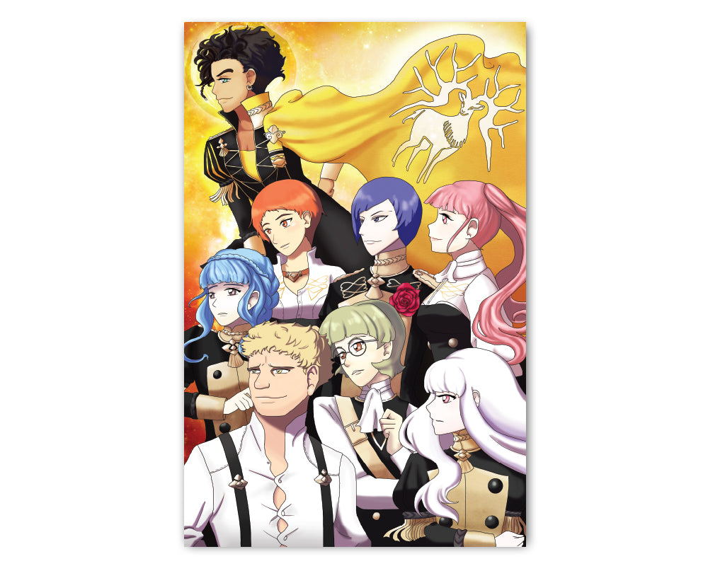 This original fan artwork print, based on house of the Golden Deer, makes for the perfect treat for yourself, a unique birthday gift, anniversary gift, Christmas gift, or even a housewarming gift. This Fantasy Artwork Print works well in an Office Setting, Kitchen, Classroom, Dorm Room, Living Spaces, and much more!