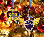 These Unique Wooden Ornament designs is two of our Fan Artworks, featuring iconic Master Sword and Shield, and Majora's Mask from the Legend of Zelda series, the perfect treat for yourself, a unique birthday gift, anniversary gift, Christmas gift, or even a housewarming gift.