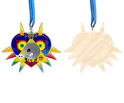 This Unique Wooden Ornament design is one of our Fan Artworks, featuring the iconic mask and other imagery from Majora's Mask, the perfect treat for yourself, a unique birthday gift, anniversary gift, Christmas gift, or even a housewarming gift. Our ornaments work well in an Office Setting, Kitchen, Classroom, Dorm Room, Living Spaces, and much more!