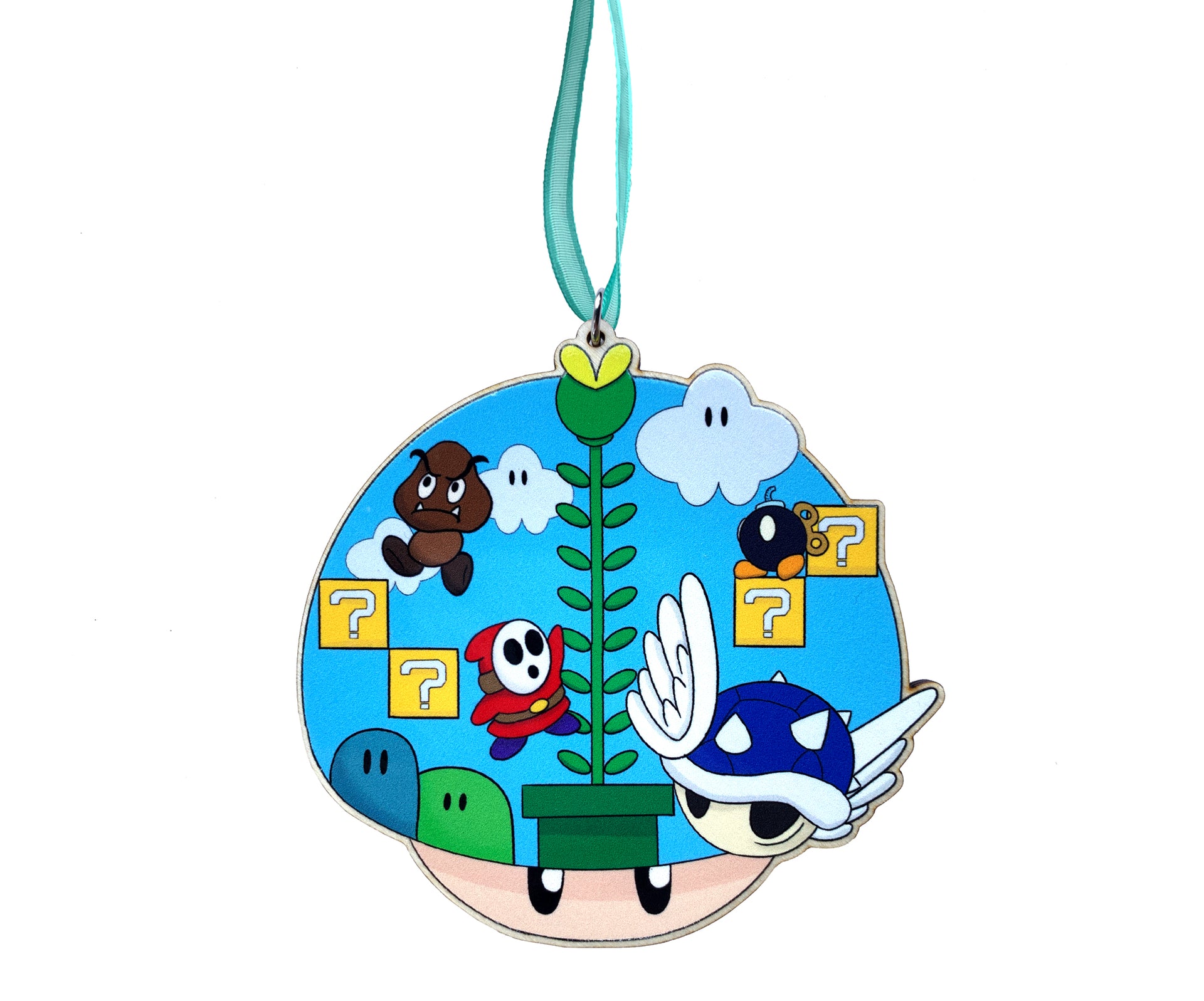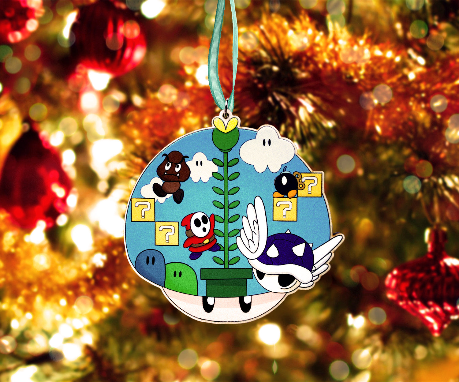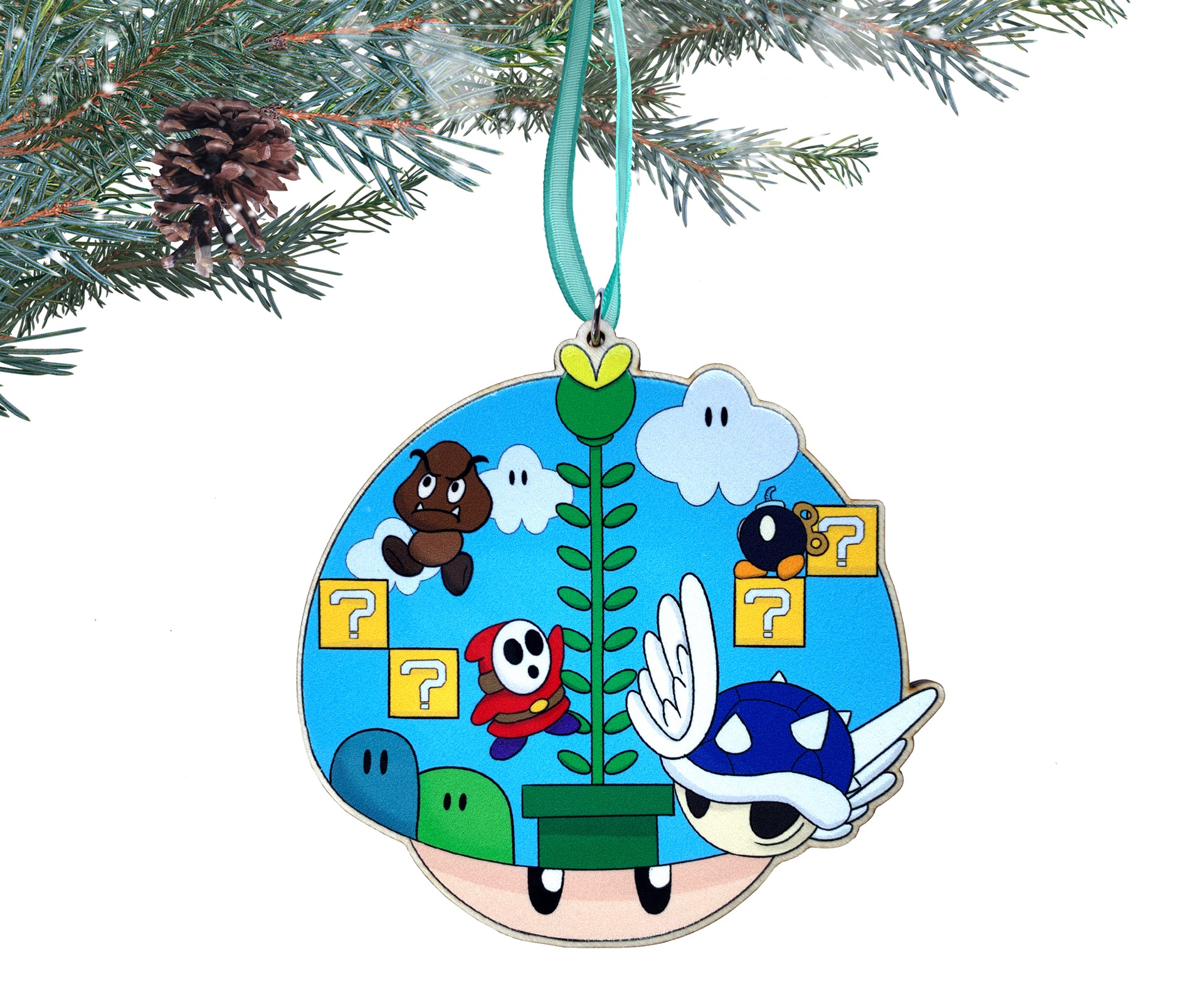 This Unique Wooden Ornament design is one of our Fan Artworks, featuring iconic imagery from the Mushroom Kingdom, the perfect treat for yourself, a unique birthday gift, anniversary gift, Christmas gift, or even a housewarming gift. Our ornaments work well in an Office Setting, Kitchen, Classroom, Dorm Room, Living Spaces, and much more!