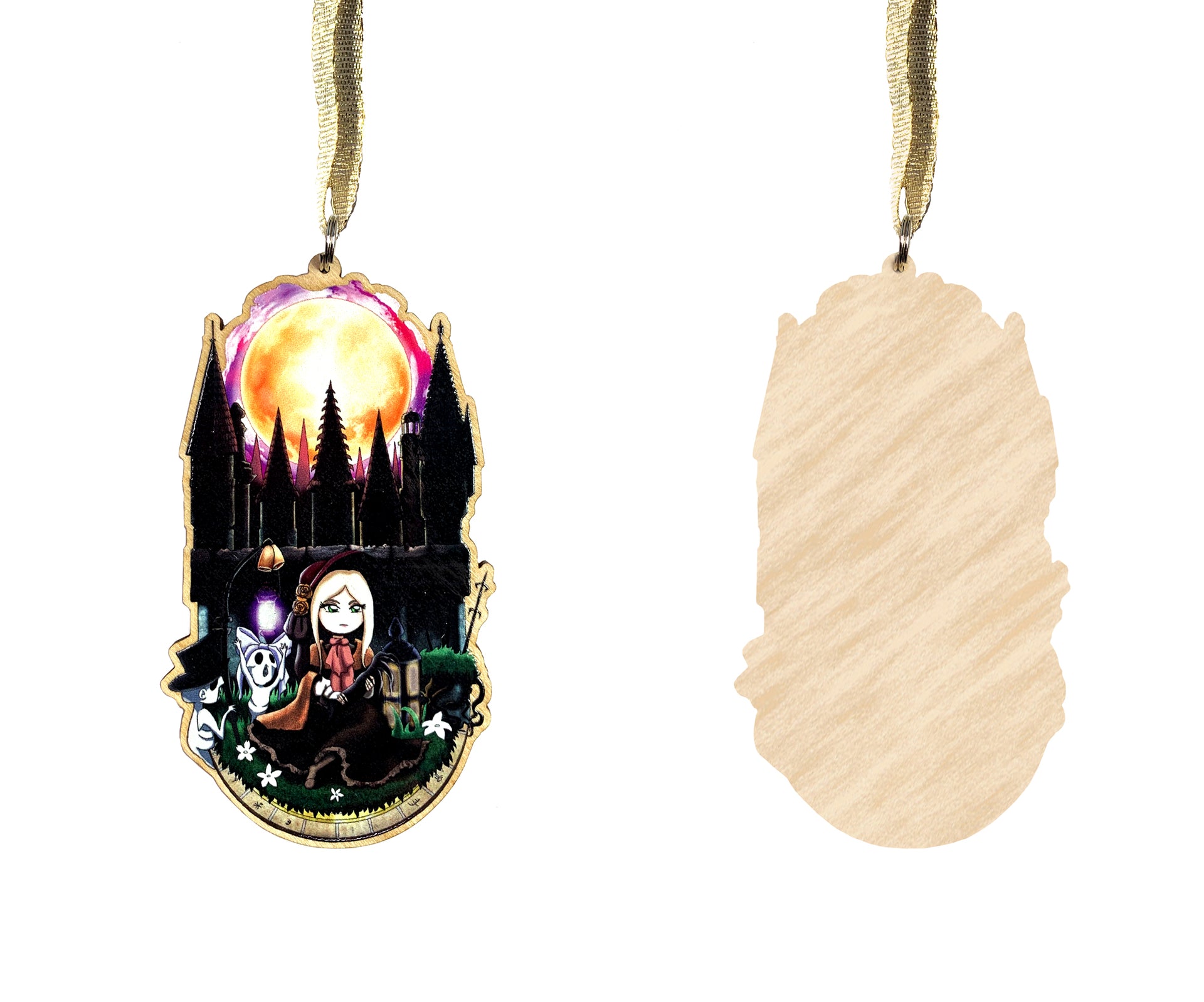 This Unique Wooden Ornament design is one of our Fan Artworks, featuring The Doll from Yharnam in the background; the perfect treat for yourself, a unique birthday gift, anniversary gift, Christmas gift, or even a housewarming gift. Our ornaments work well in an Office Setting, Kitchen, Classroom, Dorm Room, Living Spaces, and much more!