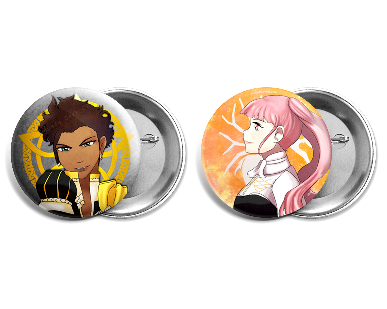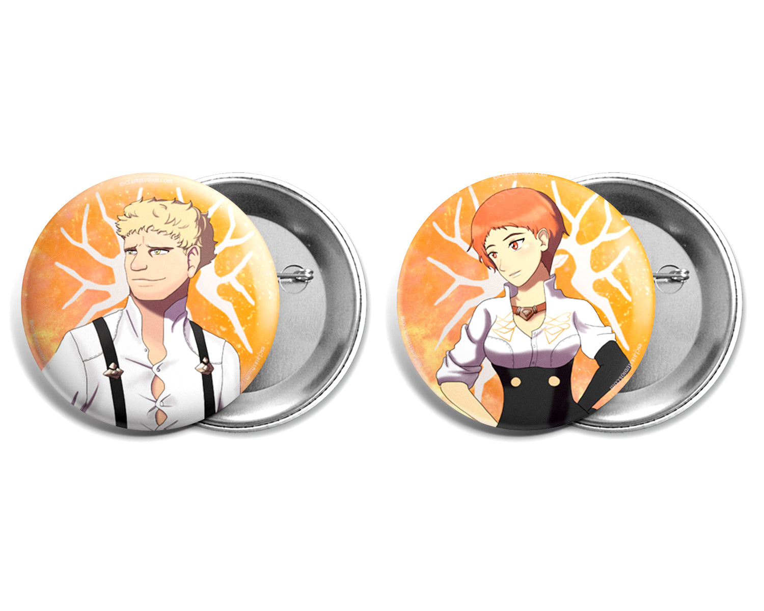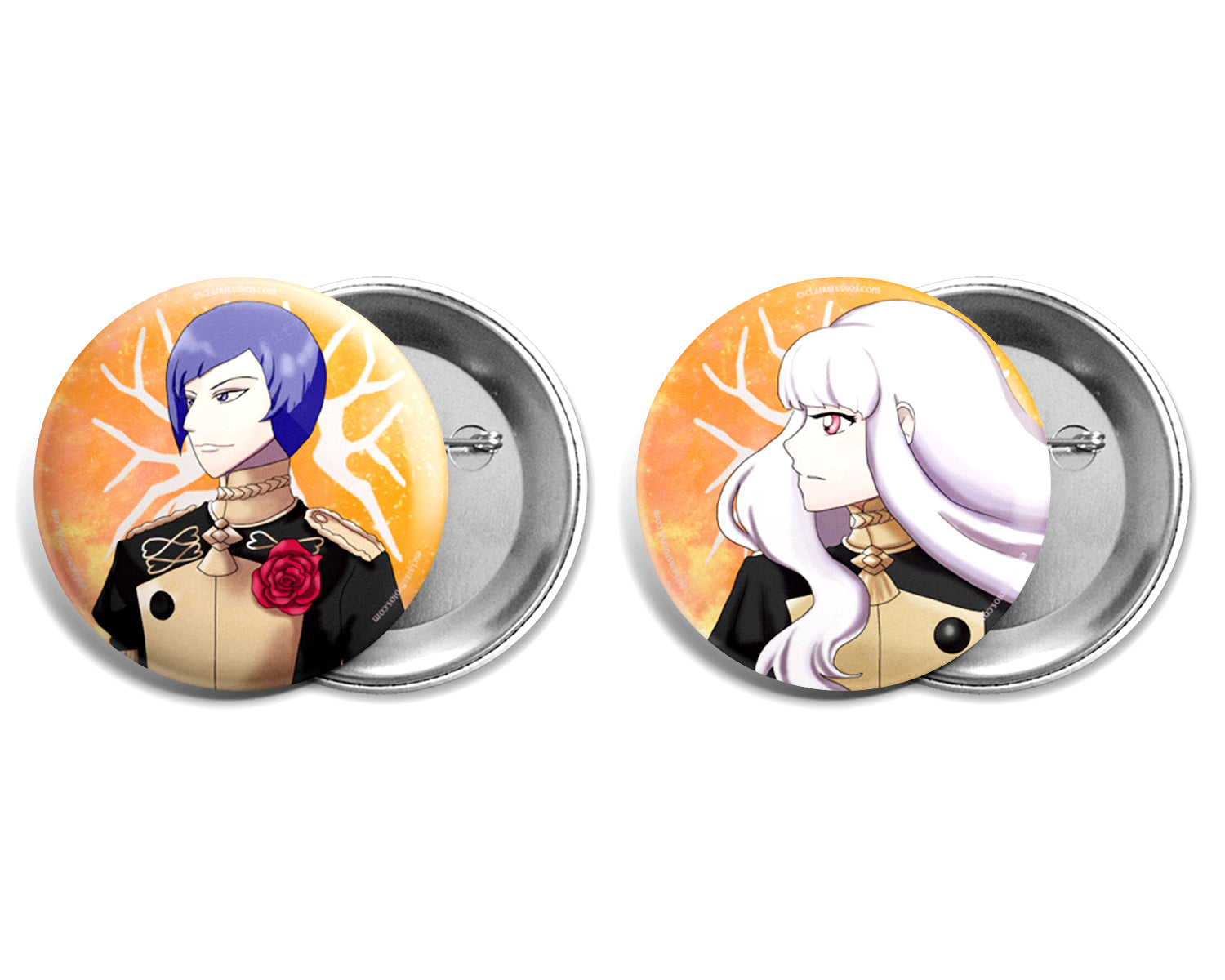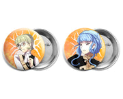 This set includes Claude, Hilda, Leonie, Raphael, Ignatz, Lorenz, Lysithea, and Marianne as pin back buttons, from Fire Emblem Three Houses. The Perfect button set for the Golden Deer fan!