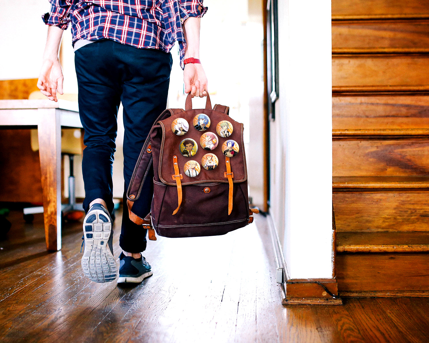 This is a Set of 8 – 2.25 inch hand pressed pin back Buttons.