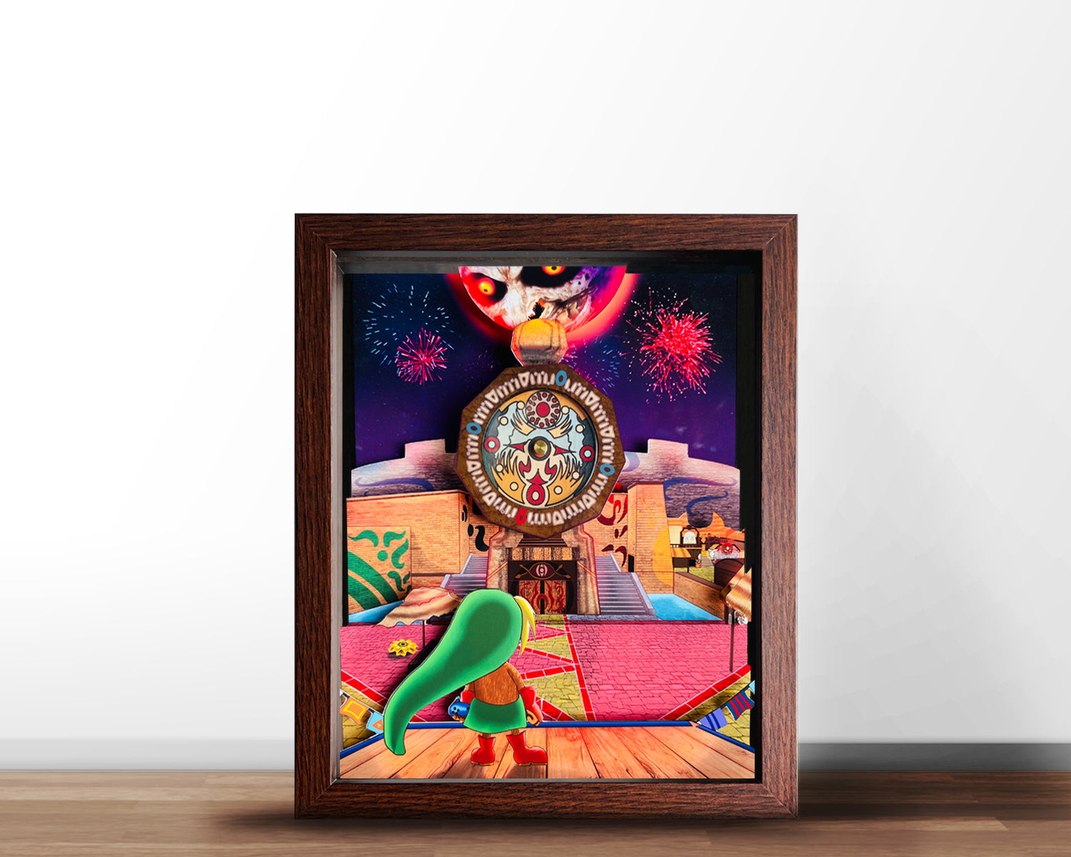 This original Moving Shadowbox Artwork, based on the famous Clock tower in Clocktown from Majora's Mask; makes for the perfect treat for yourself, a unique birthday gift, anniversary gift, Christmas gift, or even a housewarming gift.