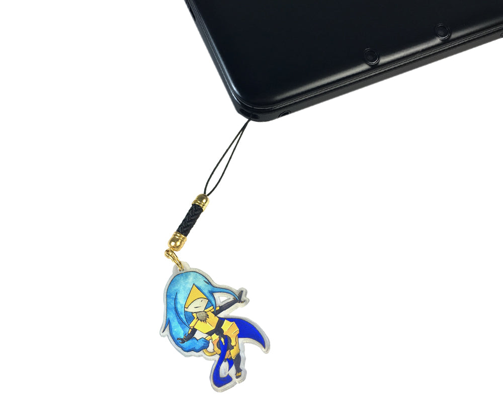 This item will come as 1.5 inch two-sided clear acrylic charm with a phone strap. Works great on Keys, Zipper Pulls, Cell Phones, and handheld Game Consoles.