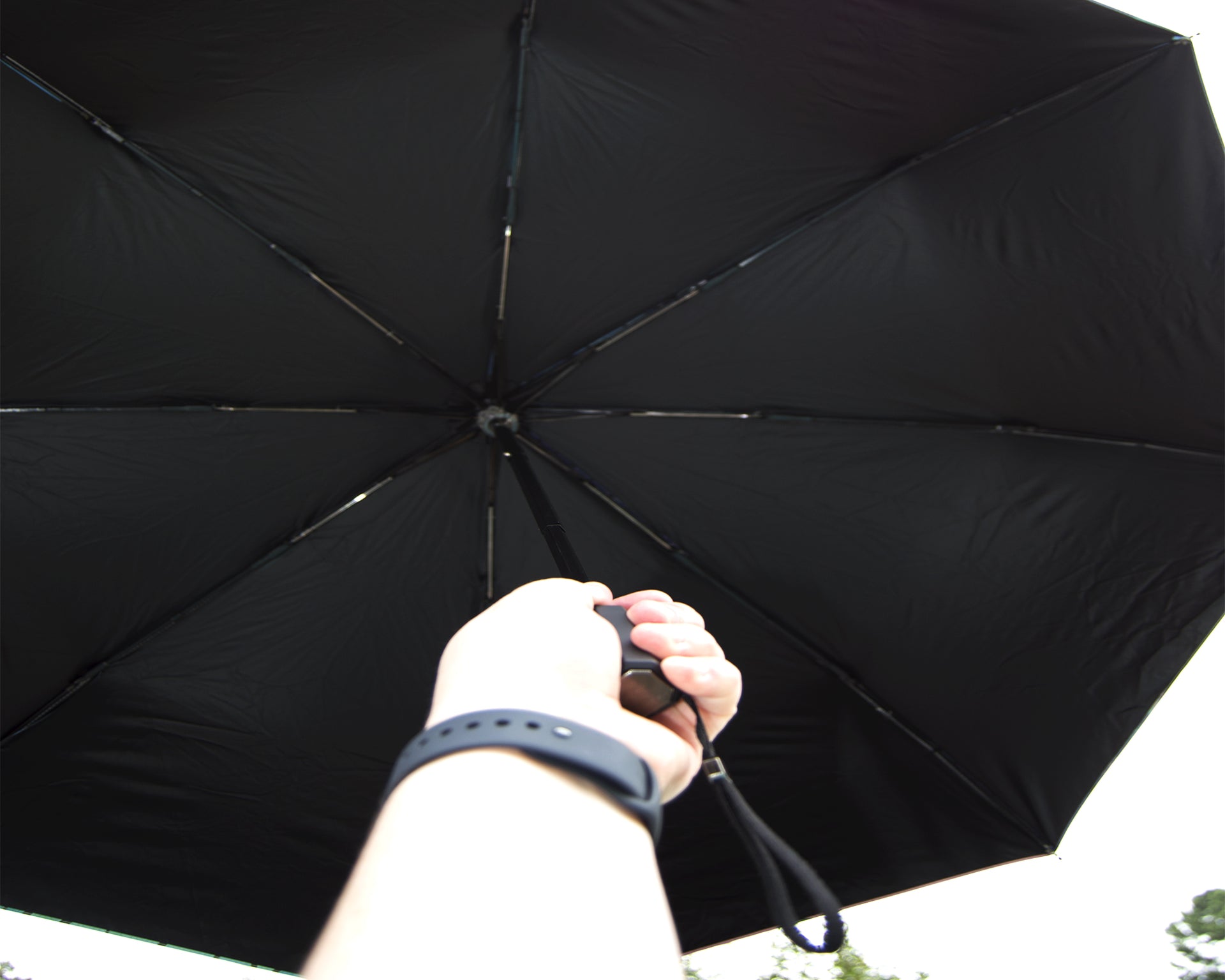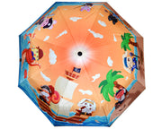 This item will come as a compact folding umbrella with a protective outer sleeve. The umbrella when open spans a diameter of 38 inches, printed on a durable polyester and coated for UV protection.