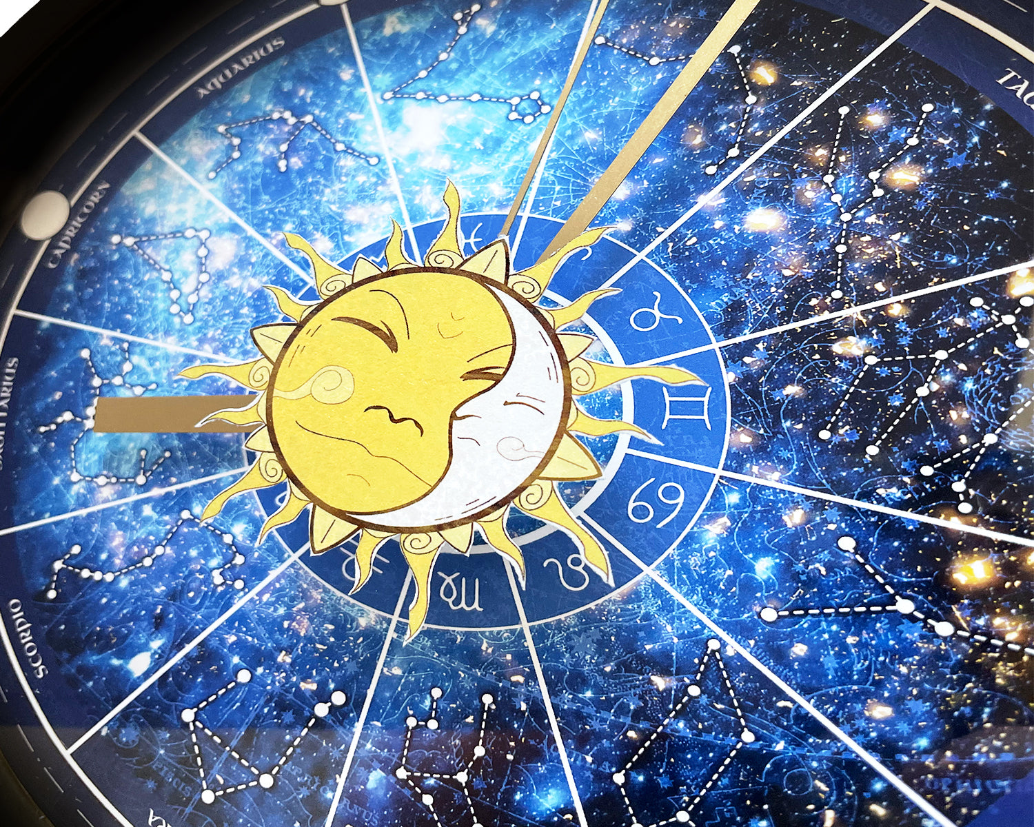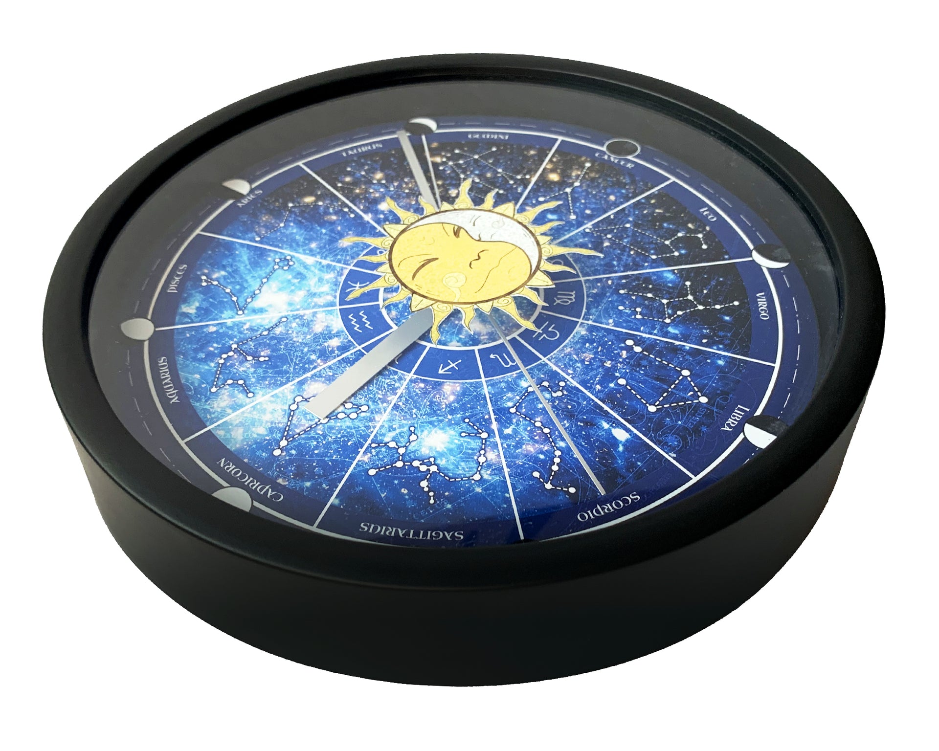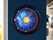 This Unique Wall Clock design is one of our Original Artworks, based on the 12 Astrological Zodiac signs from western Astrology ; the perfect treat for yourself, a unique birthday gift, anniversary gift, Christmas gift, or even a housewarming gift. Our Clocks work well in an Office Setting, Kitchen, Classroom, Dorm Room, Living Spaces, and much more!