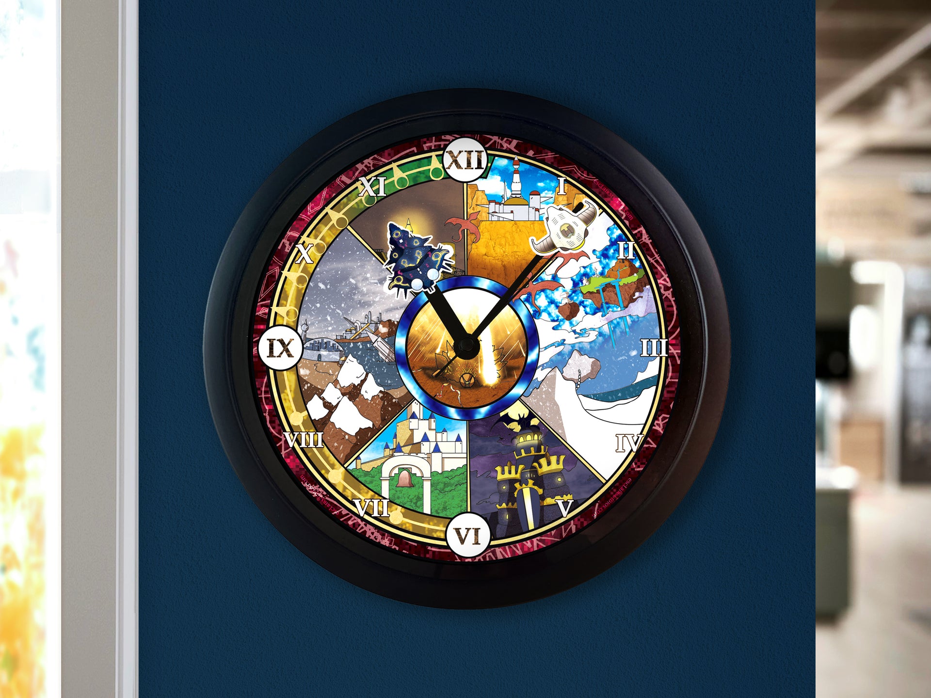 This Unique Wall Clock design is one of our Fan Artworks, based on the game Chrono Trigger, the perfect treat for yourself, a unique birthday gift, anniversary gift, Christmas gift, or even a housewarming gift. Our Clocks work well in an Office Setting, Kitchen, Classroom, Dorm Room, Living Spaces, and much more!