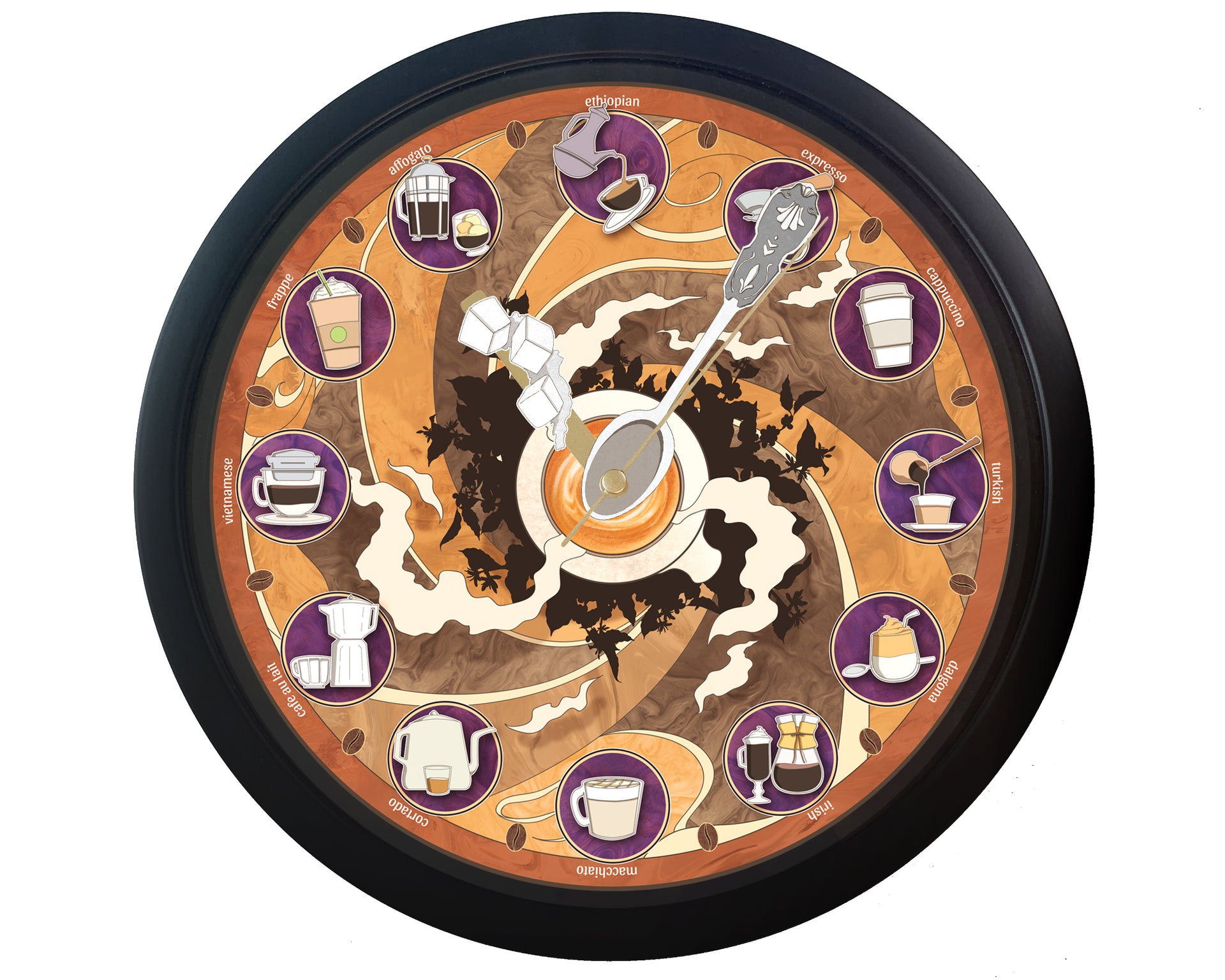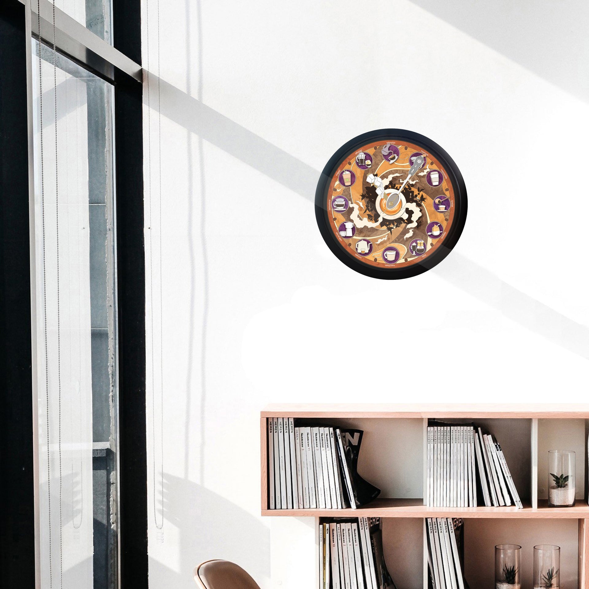 This Unique Wall Clock design is one of our Original Artworks, featuring a variety of different coffee types, including expresso, cappuccino, dalgona, macchiato, cafe au lait, and more! Making this clock the perfect coffee lovers treat for yourself, a unique birthday gift, anniversary gift, Christmas gift, or even a housewarming gift. Our Clocks work well in an Office Setting, Kitchen, Classroom, Dorm Room, Living Spaces, and much more!