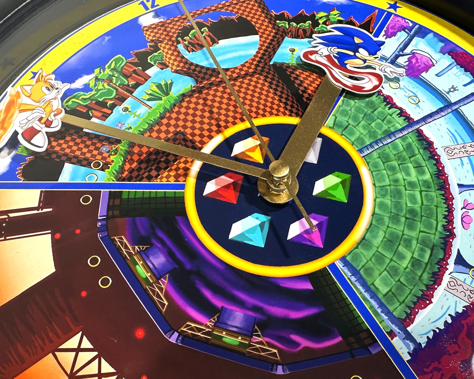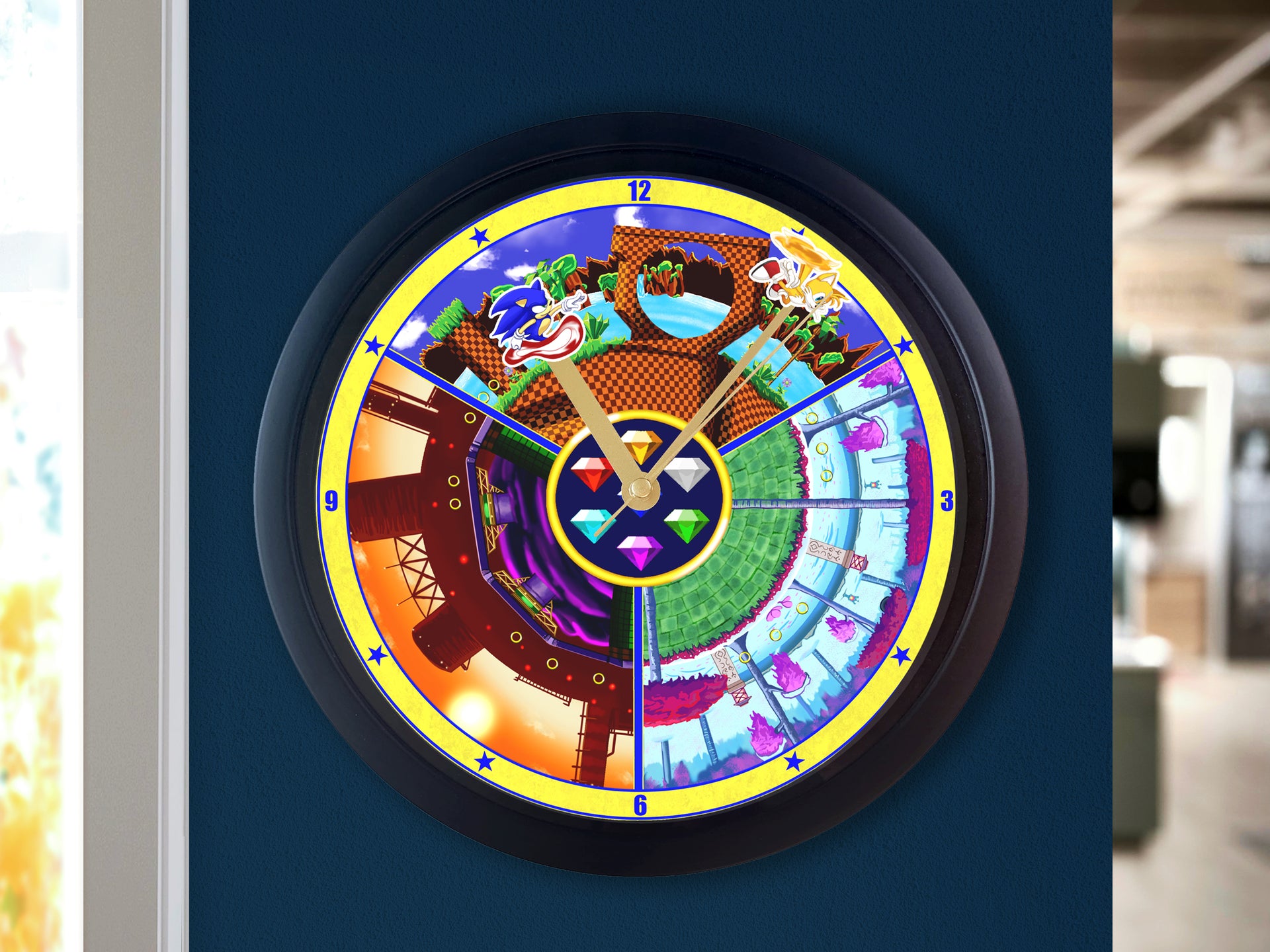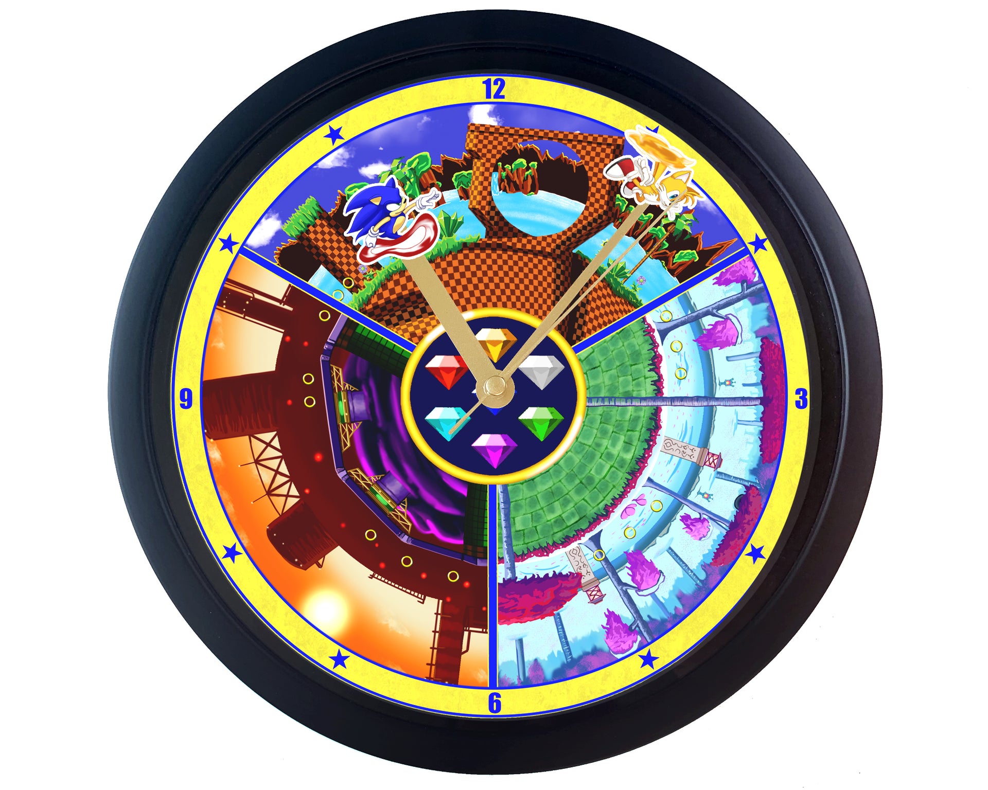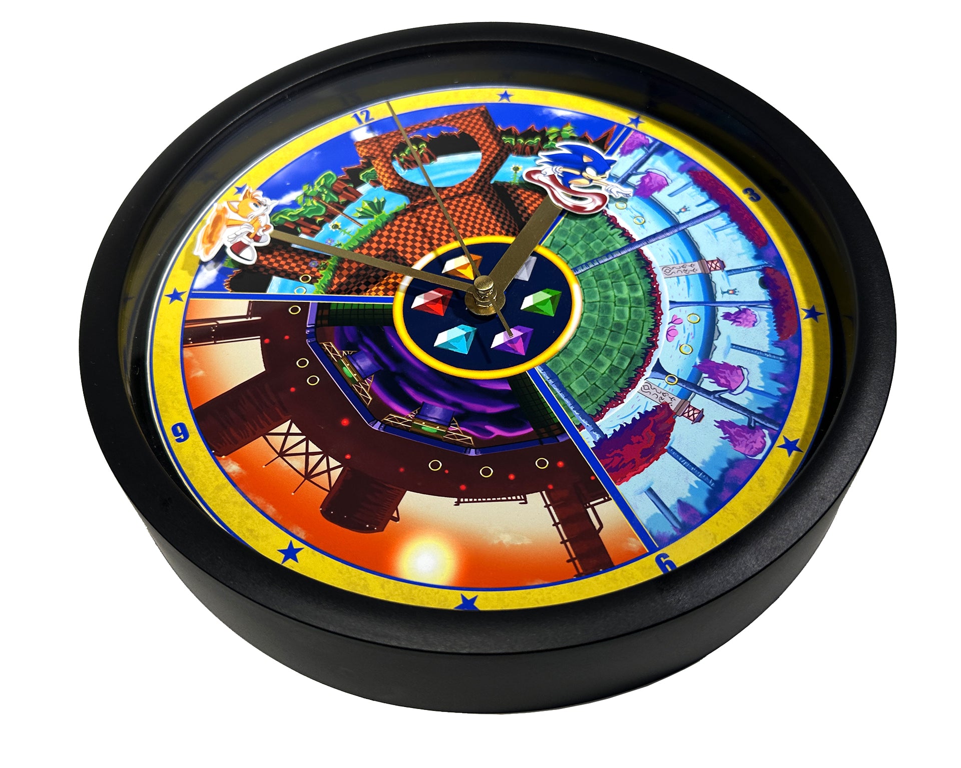 This Unique Wall Clock design is one of our Fan Artworks, featuring Sonic and Tails as they go through the different game levels, the perfect treat for yourself, a unique birthday gift, anniversary gift, Christmas gift, or even a housewarming gift. Our Clocks work well in an Office Setting, Kitchen, Classroom, Dorm Room, Living Spaces, and much more!